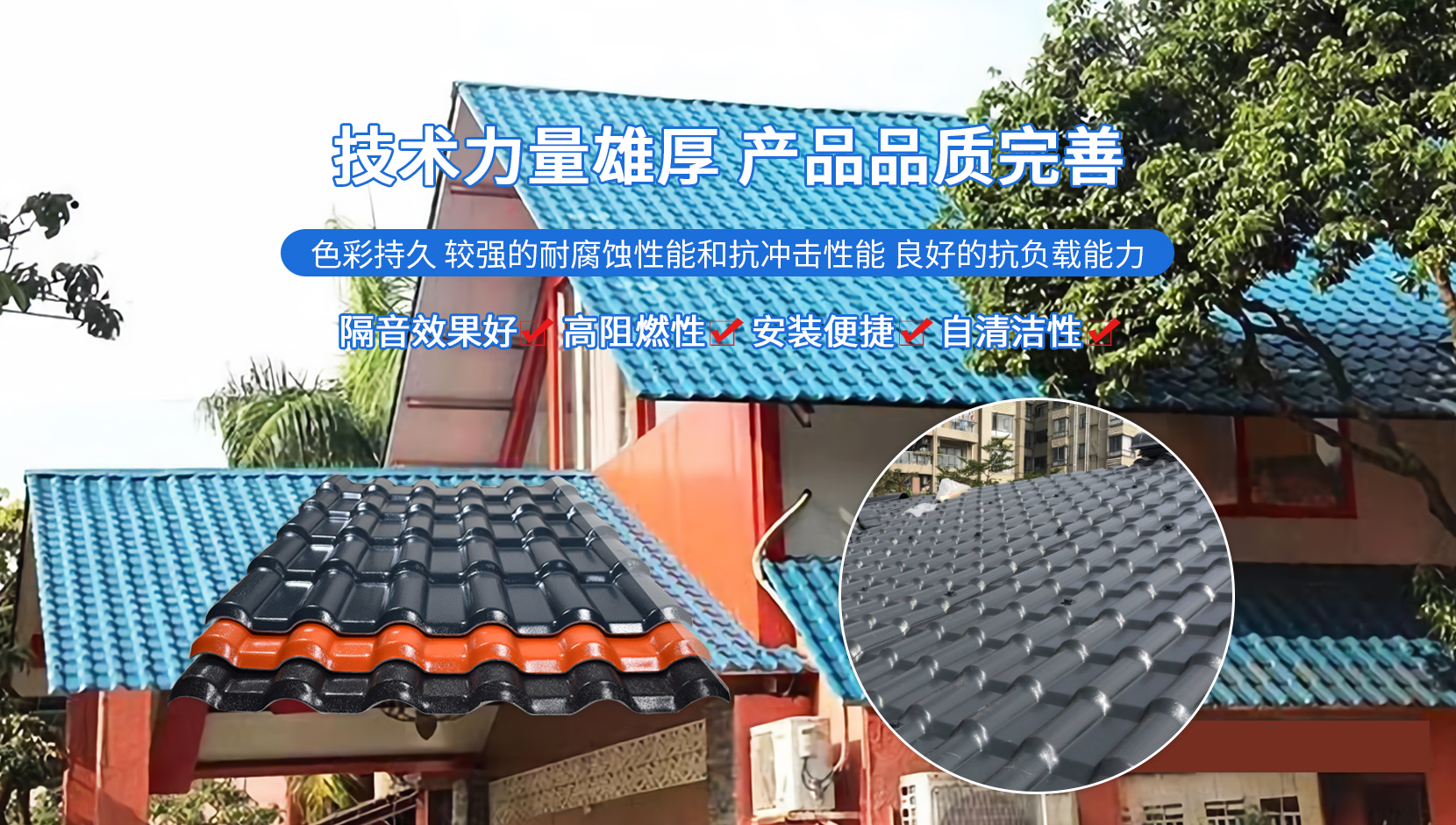 判斷合成樹(shù)脂瓦好壞的方法 在購(gòu)買(mǎi)合成樹(shù)脂瓦時(shí),我們應(yīng)憑借什么依據(jù)去判斷它的好壞呢?如何能避免上當(dāng)受騙呢? 一、稱(chēng)比重。合成樹(shù)脂瓦主要原材瓦料是聚氯乙烯。稱(chēng)重1平方米大的樹(shù)脂瓦的重量/體積≈1.4,證明樹(shù)脂瓦主材為PVC能有效保證產(chǎn)品使用壽命。若不足證明樹(shù)脂瓦中添加了大量的重質(zhì)碳樹(shù)脂瓦酸鈣及其它填充料,不僅無(wú)法保使用壽命而且產(chǎn)品脆性很大?! 《⒂没馃?。用火點(diǎn)燃合成樹(shù)脂瓦一角,火源離開(kāi)后,火苗立刻自息。偽劣樹(shù)脂瓦火苗有蔓延之勢(shì)并有較大的刺激氣味。這樣的產(chǎn)品是不符合消防要求而且耐候性能差,在陽(yáng)光下易產(chǎn)生開(kāi)裂?! ∪⒖赐庥^(guān)。合成樹(shù)脂瓦質(zhì)地輕盈,板與板敲擊有沉悶感。偽劣仿制樹(shù)脂瓦用手掂有沉重感。板與板敲擊聲音清脆。產(chǎn)品外形輪廓清晰,材料本身有光澤。反之為偽劣仿制樹(shù)脂瓦。